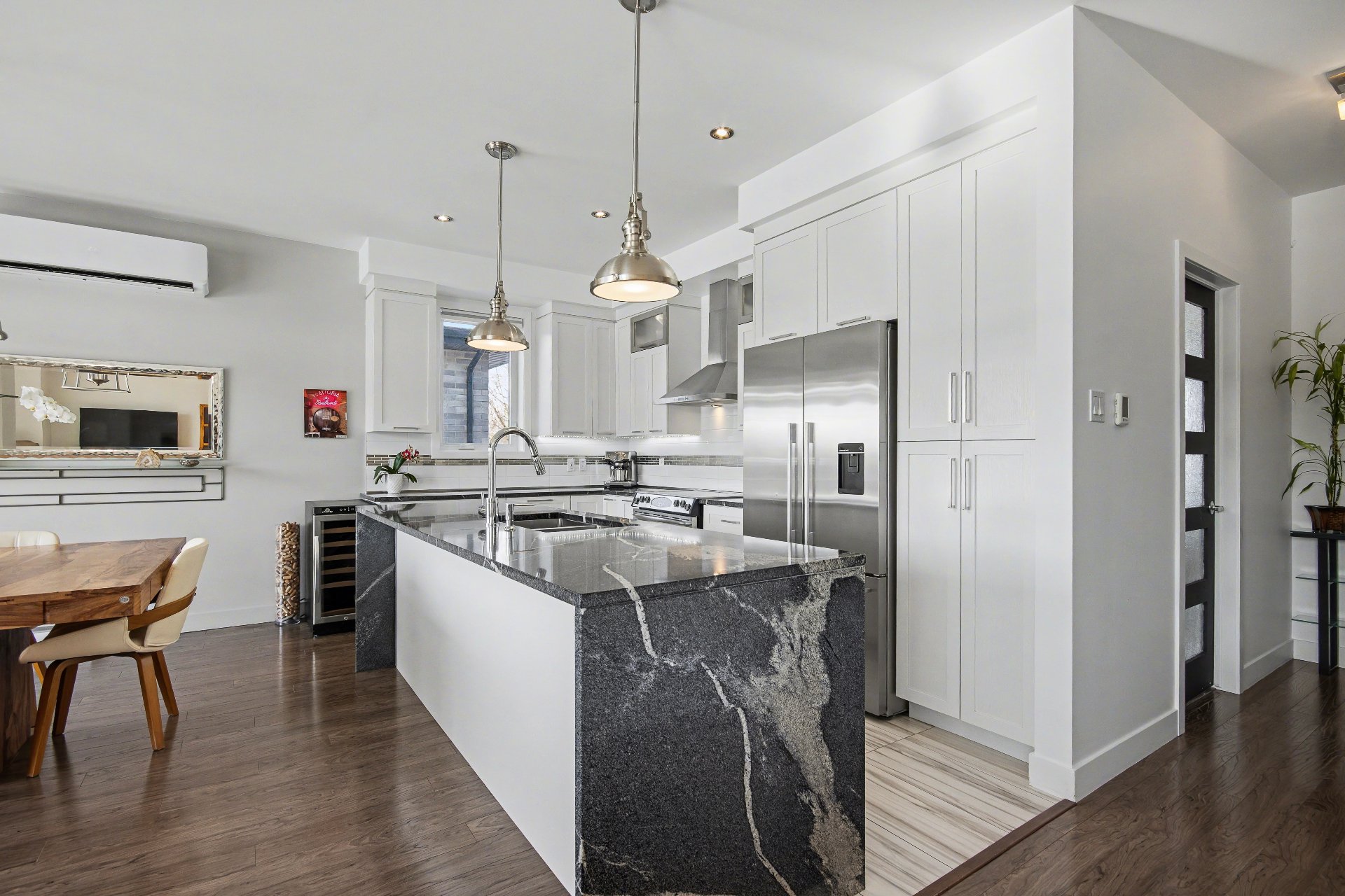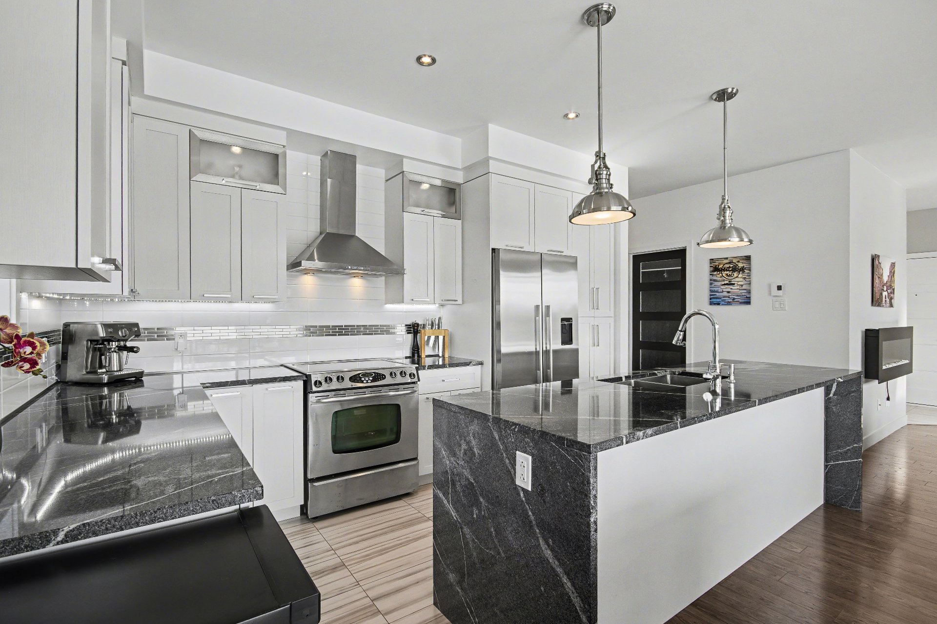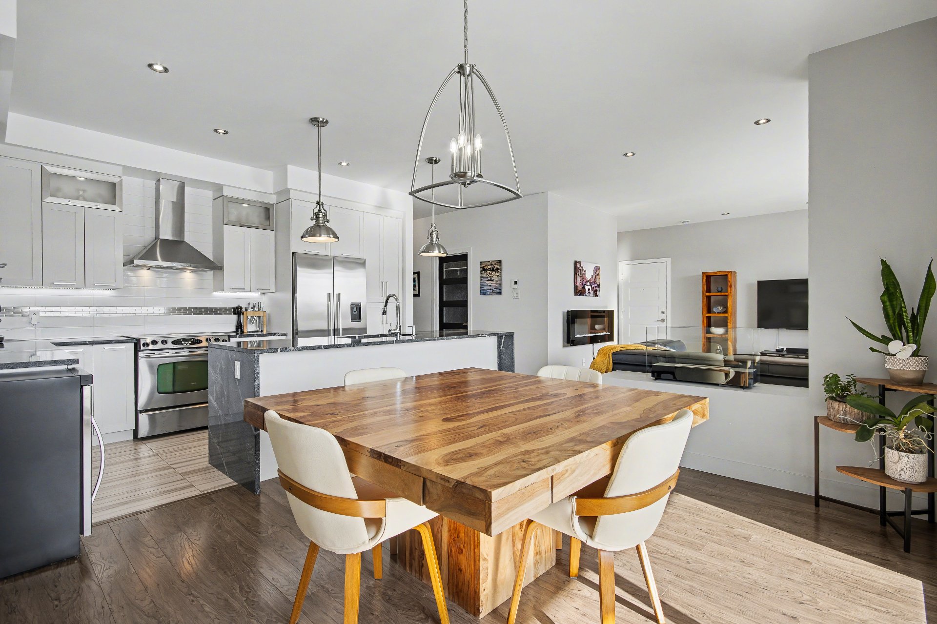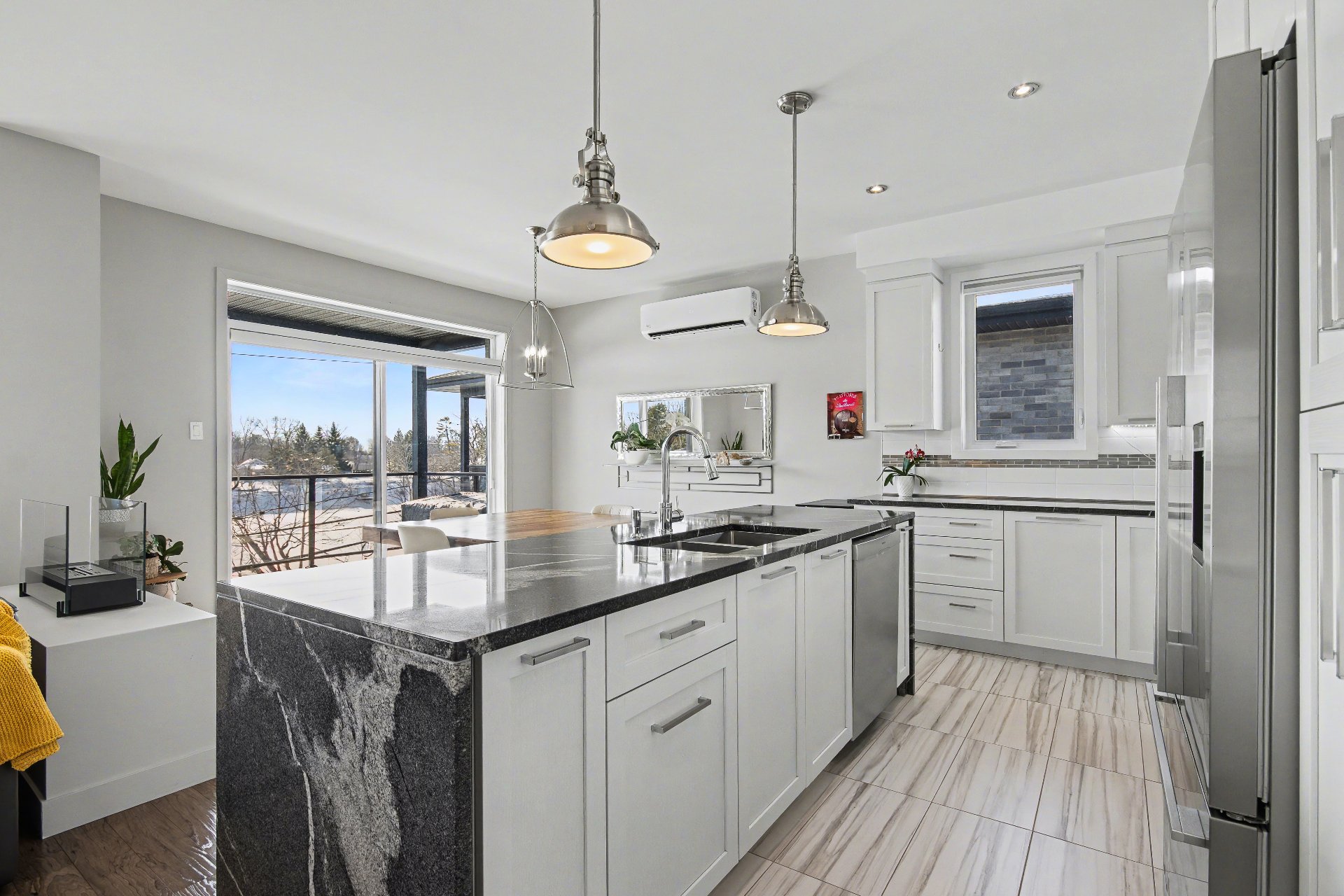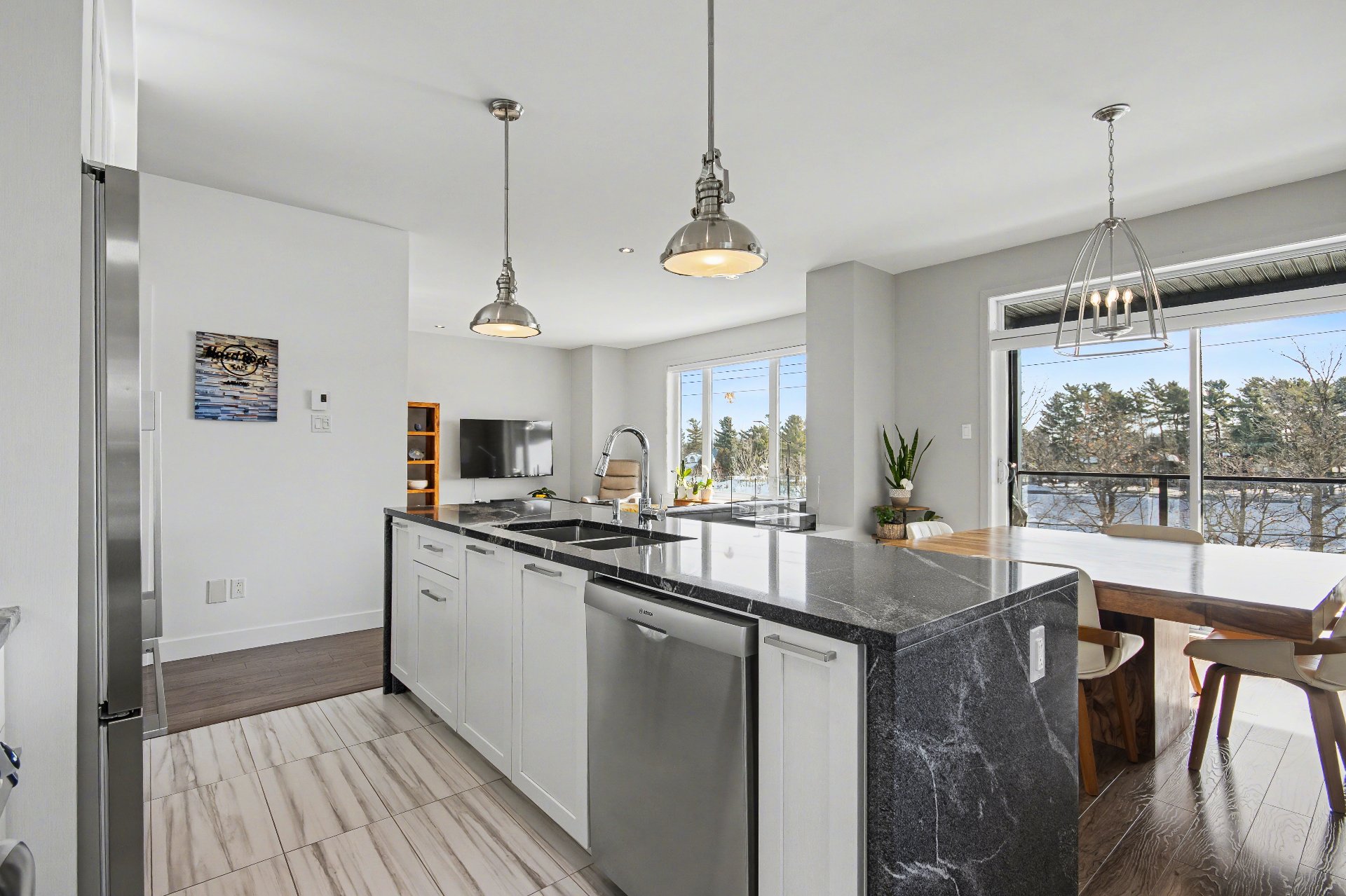 Bord de l'eau avec accès notarié au Canal-de-Chambly. Condo d'environ 1 300 pi² (2015) offrant une luminosité exceptionnelle, plafonds de 9 pi et vaste fenestration. Aucun voisin à l'arrière ni au-dessus. Vue panoramique sur le canal. Cuisine avec comptoir de granit de 9 pi. Deux chambres, dont une avec walk-in. Salle de bain avec plancher chauffant. Terrasse couverte 8 x 15 pi et second balcon. Garage isolé et stationnement additionnel. Une visite vous convaincra.