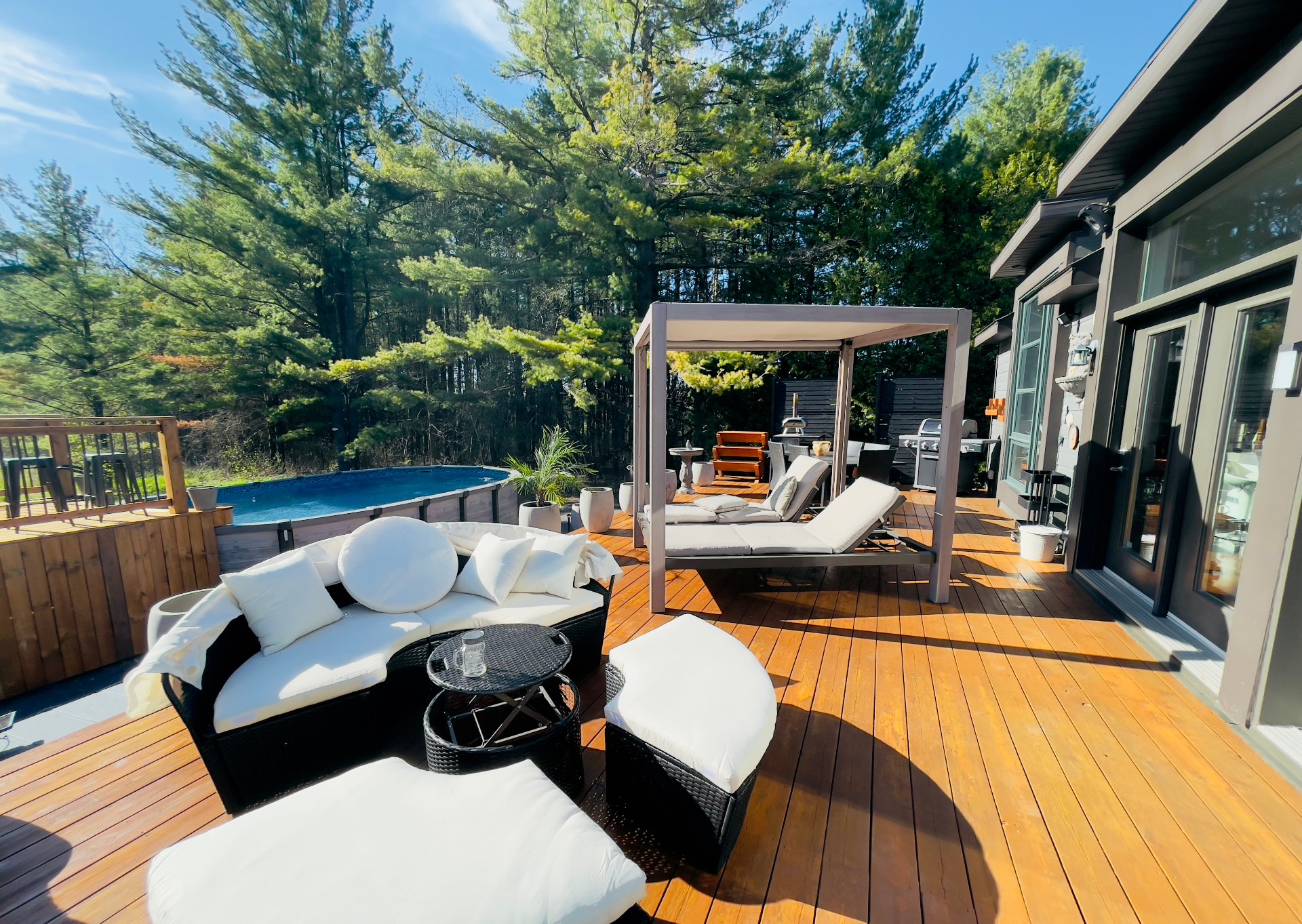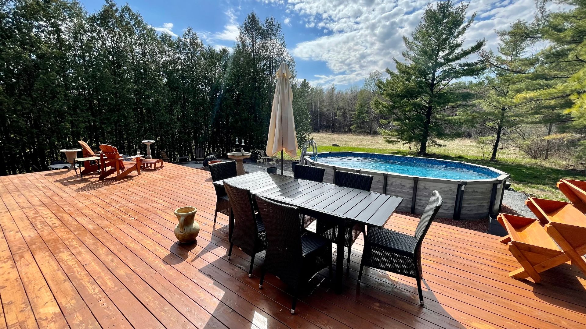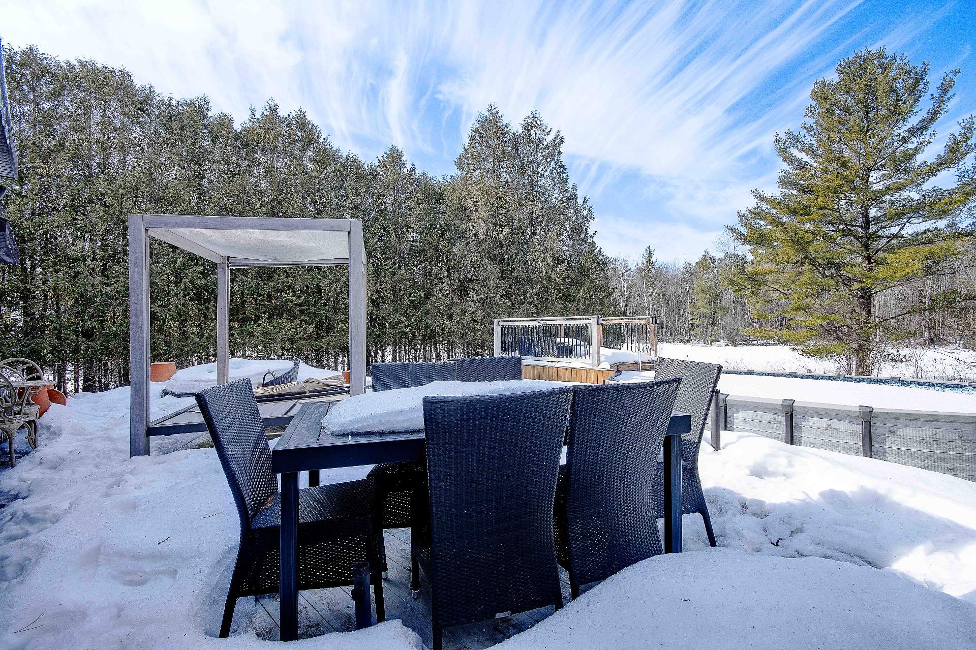 Maison à vendre à Canton de Bedford. Magnifique propriété située dans un paysage enchanteur offrant 2 chambres à coucher et une belle luminosité grâce à ses grandes fenêtres laissant entrer la lumière naturelle. Aire ouverte entre le salon et la cuisine avec grand îlot, cellier et planchers de bois franc. Un foyer double face ajoute une touche chaleureuse, un au salon et un autre chambre à coucher principale. Sous-sol semi-aménagé avec possibilité d'ajouter une 3e chambre. Superbe cour arrière avec terrasse, piscine et vue spectaculaire sur la nature. Un véritable havre de paix! Demandez votre visite dès maintenant, coup de coeur assuré!