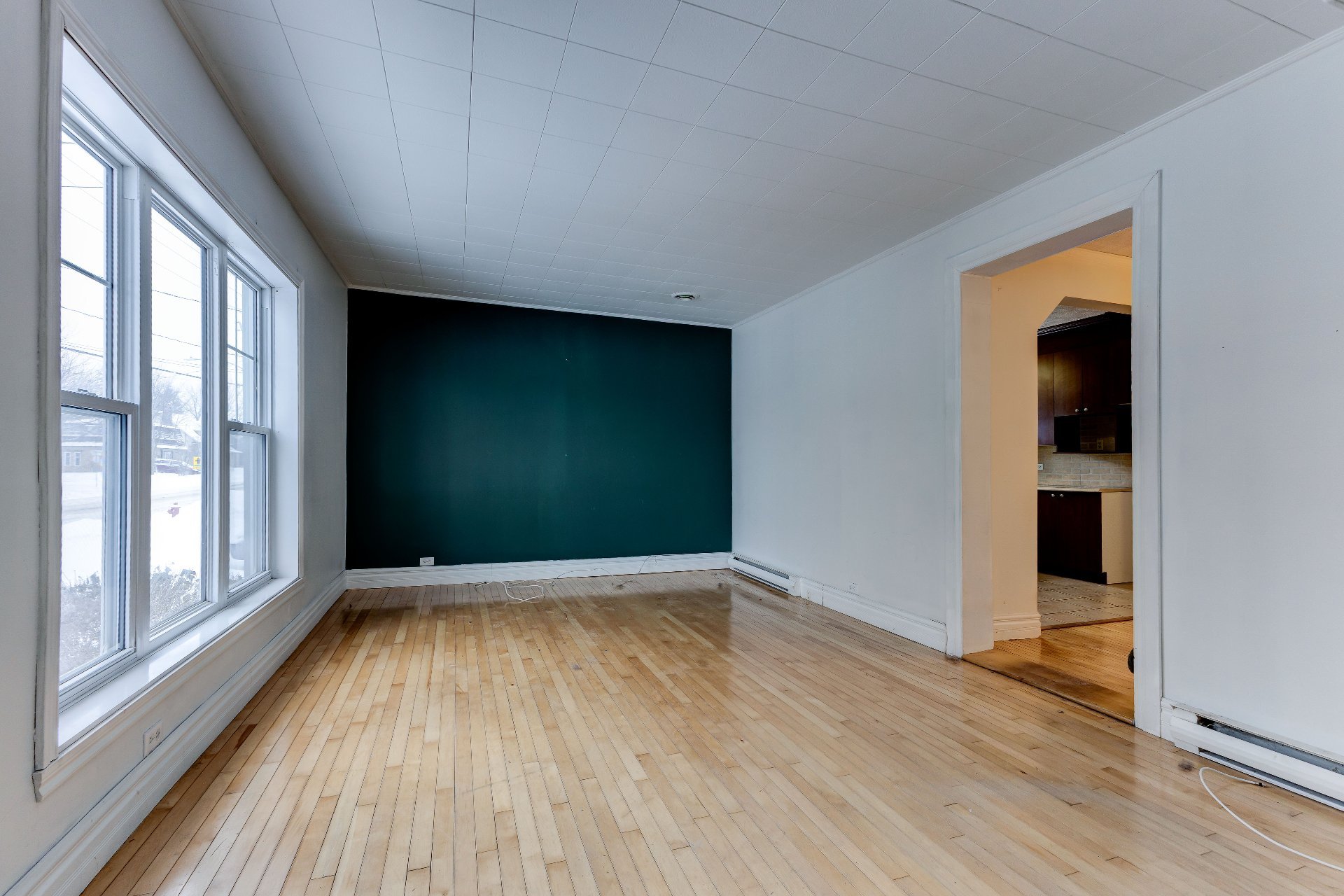| Pièce Salon | Étage Rez-de-chaussée | Dimensions 17.6x11.11 P | Plancher Bois |