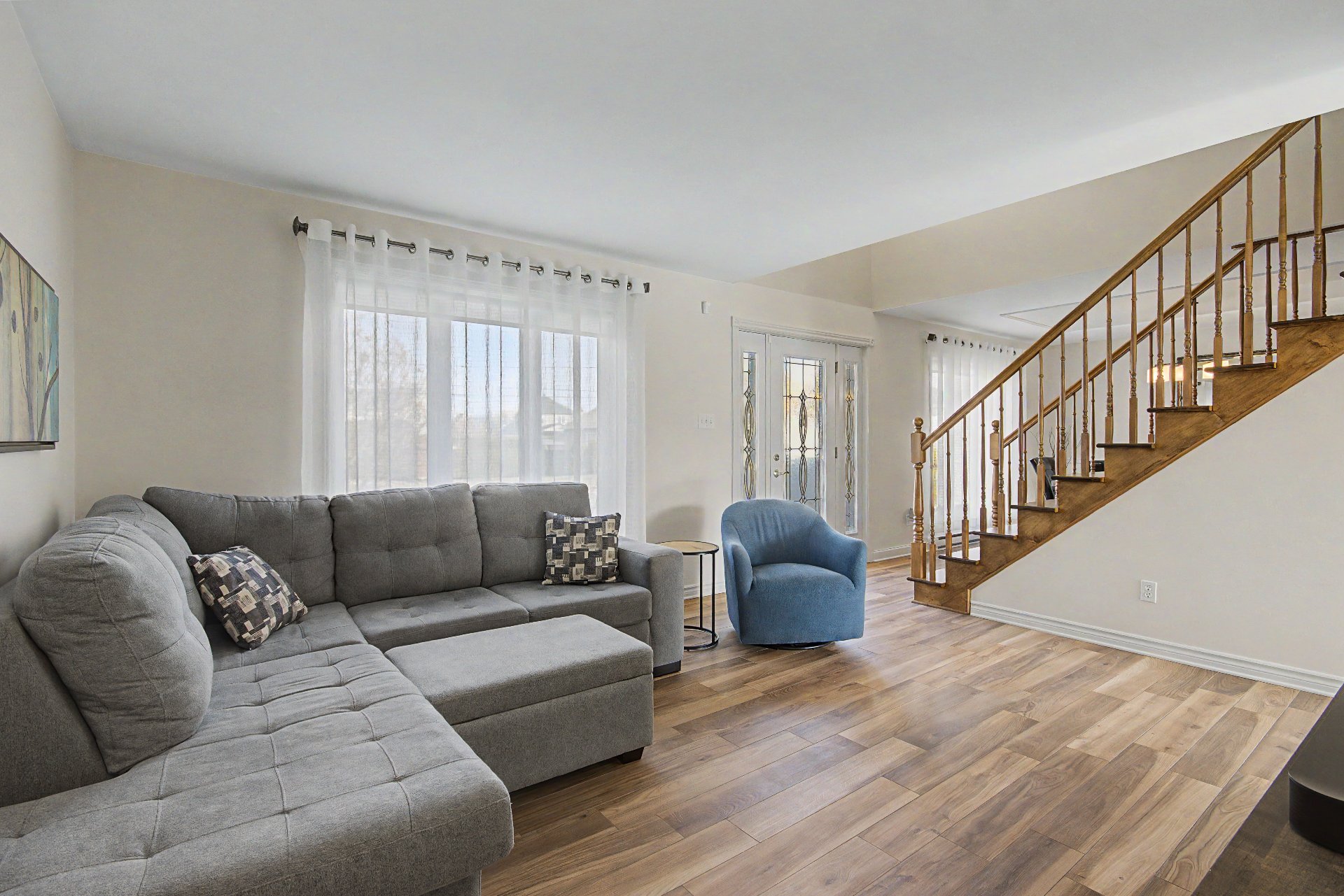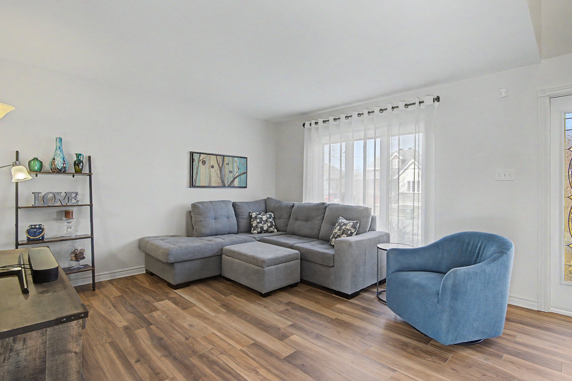 | Pièce Salon | Étage Rez-de-chaussée | Dimensions 14.11x13.4 P | Plancher Plancher flottant |